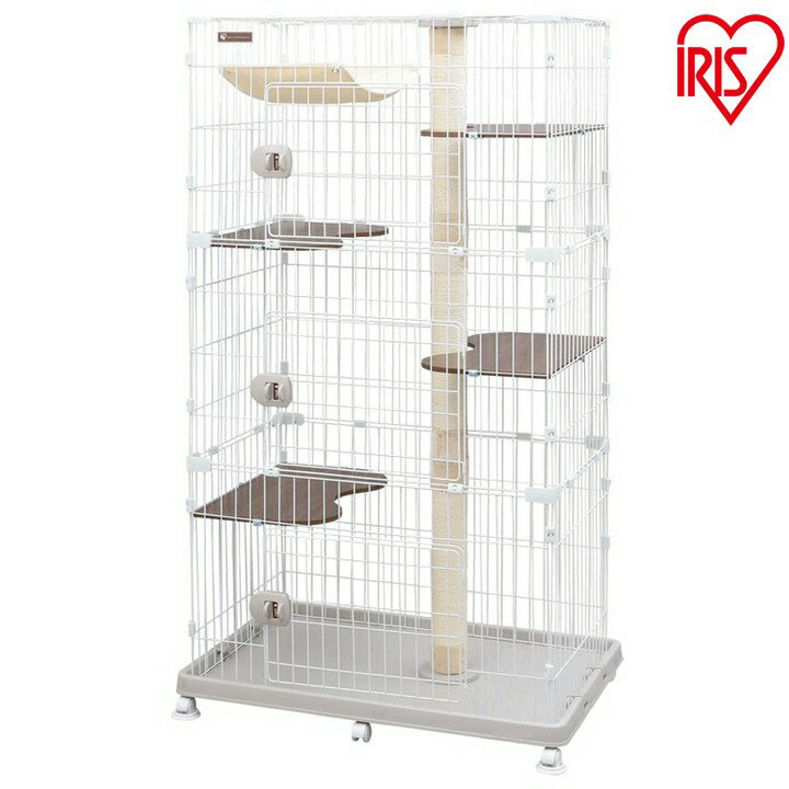 猫 ケージ キャットランドケージ ワイド ホワイト PCLC-903 キャットランド キャットタワー 3段 ケージ 檻 オリ ハウス ゲージ キャットゲージ キャット おもちゃ つめとぎ ハンモック アイリスオーヤマ