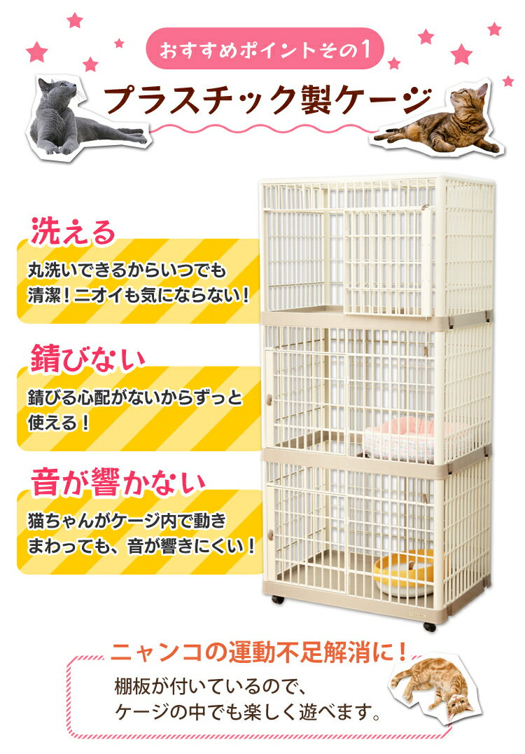 サビない!手入れが簡単!軽い!プラスチック製の良さを活かした、猫に最適な多段タイプのケージです♪