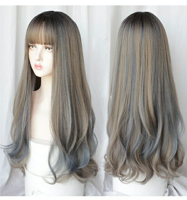 【期間限定!マスクプレゼント中】ウィッグ ロング レディース グレー ブルー メッシュ フルウィッグ 仮装 超自然 エクステ かつら wig ロリータ Lolita コスプレ ハロウィン レイヤー 小顔 原宿系 耐熱ウィッグ dp050x1